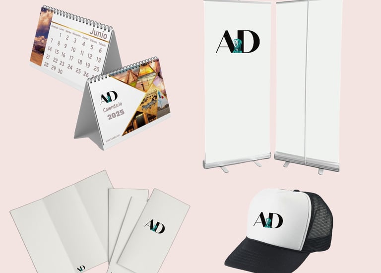 Elementos para publicitar tu marca, merchandising, regalos en eventos, brochure y más etc.